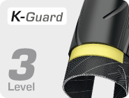 Our minimum standard for protection belts. This Guard has been proven for many years. It consists of natural rubber and is reinforced with KEVLAR® fibres. Together with the 50 EPI carcass all Active Line tires are well protected against punctures. KEVLAR® is a trademark of DuPont.